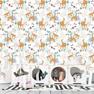 Elephants in Tropical Jungle on The Green Background modern yet warm feel Kid’s Wallpaper